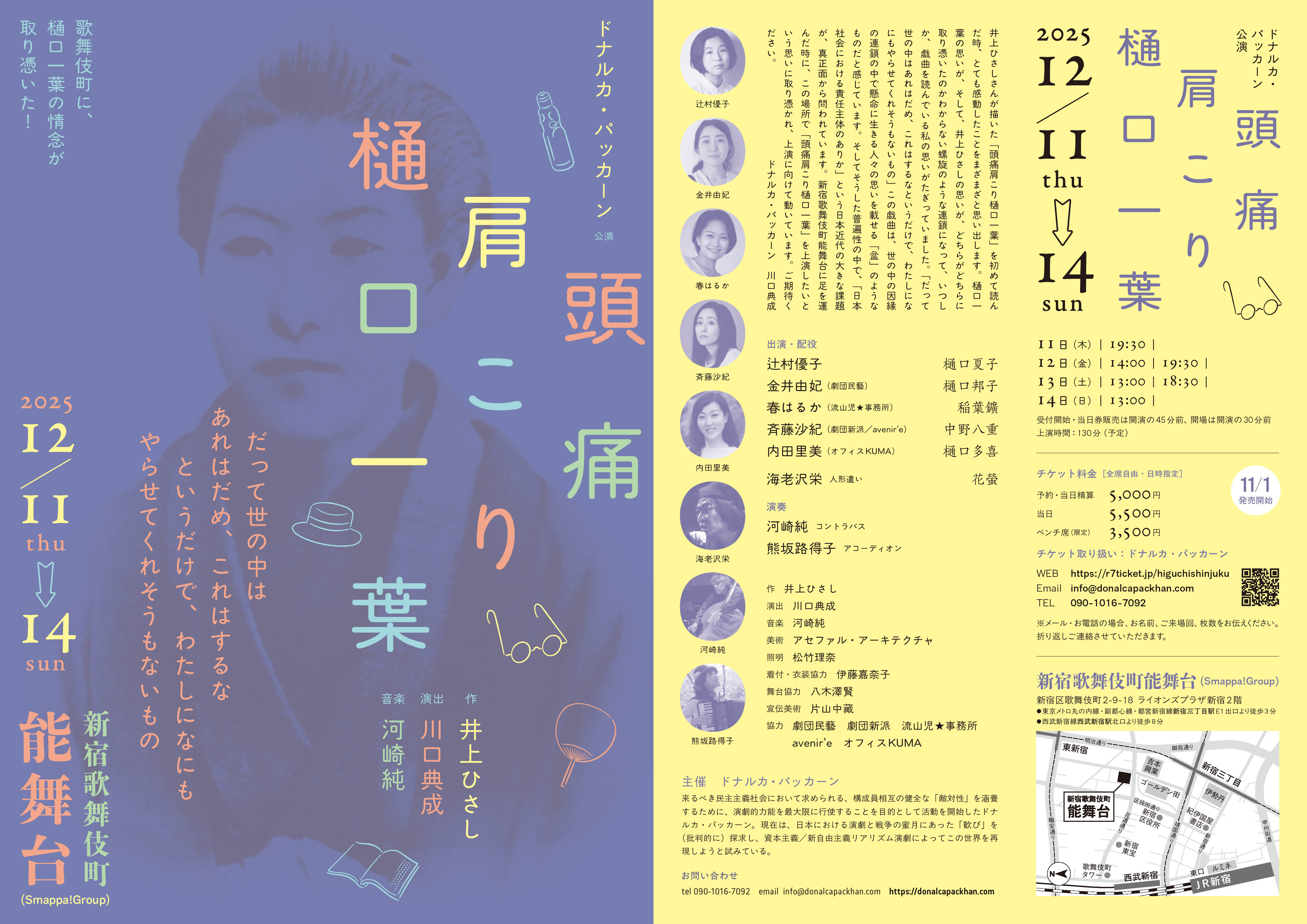 新宿歌舞伎町能舞台に足を運んだ時に、この場所で「頭痛肩こり樋口一葉」を上演したいという思いに取り憑かれ、上演に向けて動いています。